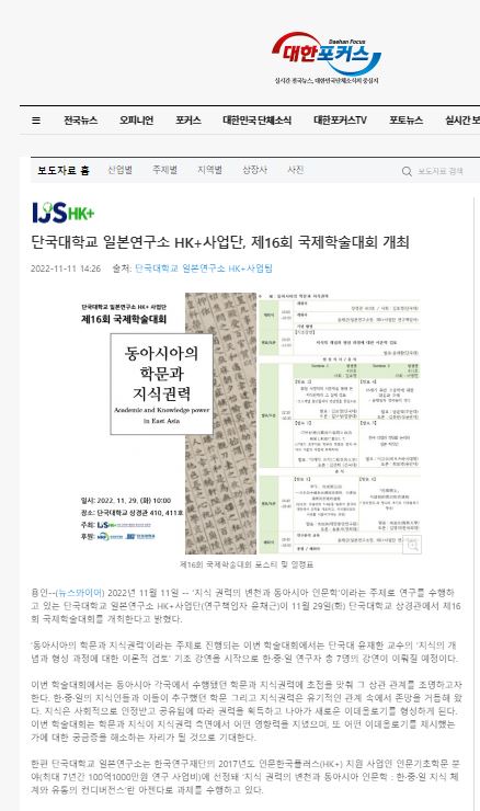 [대한포커스 2022. 11. 11] 단국대학교 일본연구소 HK+사업단, 제16회 국제학술대회 개최