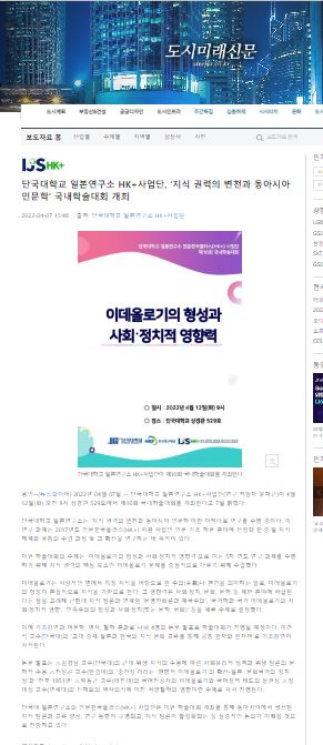 [도시미래신문 2022. 04. 07] 단국대학교 일본연구소 HK+사업단, ‘지식 권력의 변천과 동아시아 인문학’ 국내학술대회 개최
