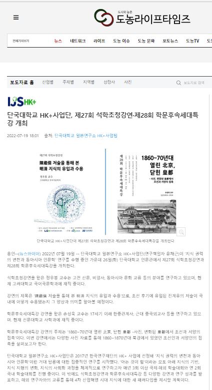 [도농라이프타임즈 2022. 07. 09] 단국대학교 HK+사업단, 제27회 석학초청강연·제28회 학문후속세대특강 개최