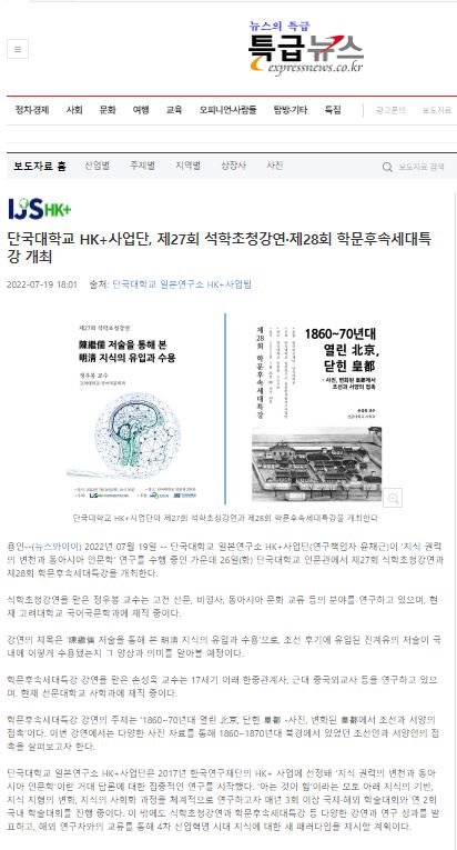 [특급뉴스 2022. 07. 19] 단국대학교 HK+사업단, 제27회 석학초청강연·제28회 학문후속세대특강 개최