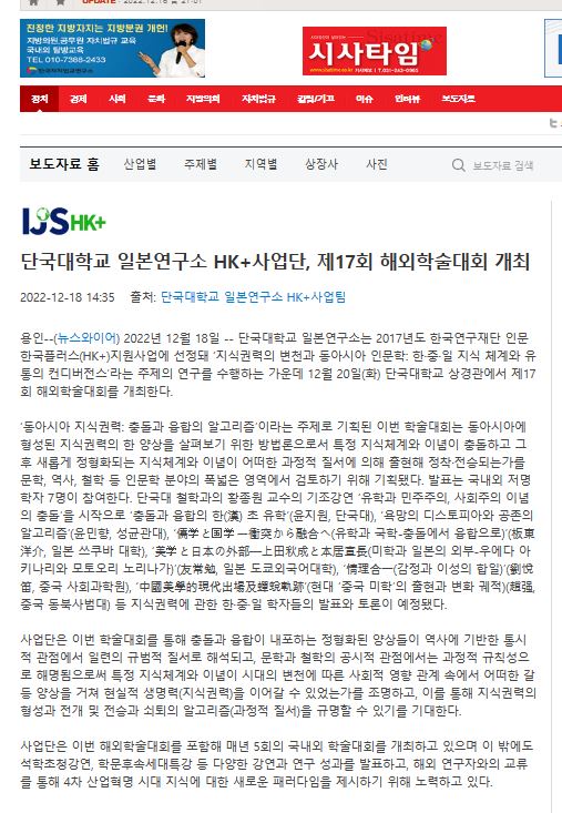 [시사타임 2022. 12. 18] 단국대학교 일본연구소 HK+사업단, 제17회 해외학술대회 개최