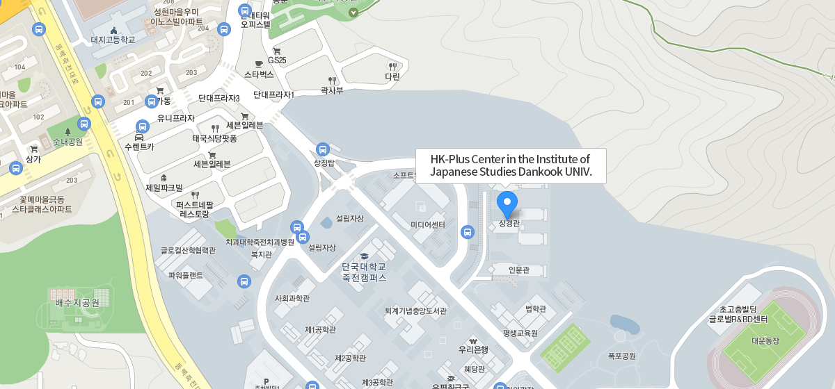 | Bundang LineJookjeon Station(Dankook UNIV.) | Exit 3 and transfer to Dankook UNIV. shuttle bus at the other side. Exit 1 and transfer to 660, 720-3, or 24 |